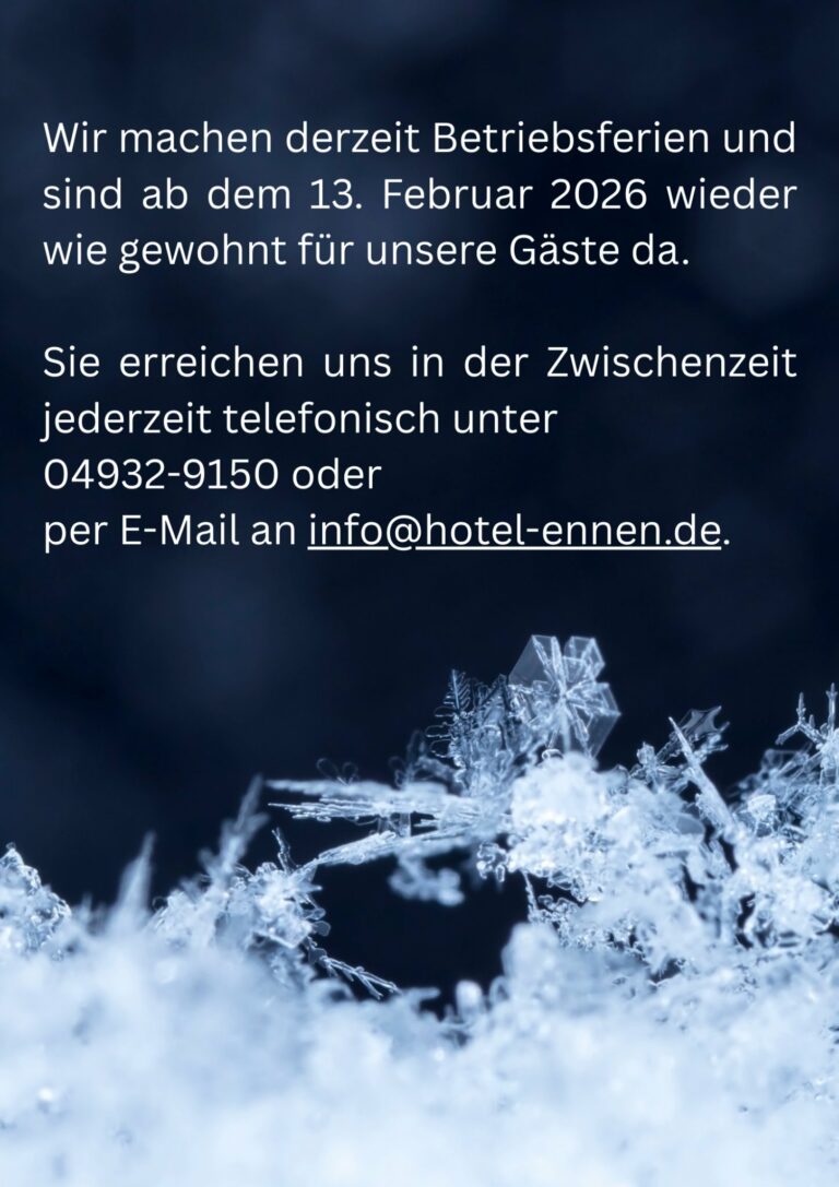 Sie sind auf der Suche nach einer geeigneten Unterkunft für Ihren Urlaub oder ein gemütliches langes Wochenende? Oder nach einem Platz für Ihre nächste Familien- oder Betriebsfeier? Was auch immer der Anlass für Ihre Suche ist: Bei uns im Hotel Ennen auf Norderney sind Sie auf jeden Fall richtig!